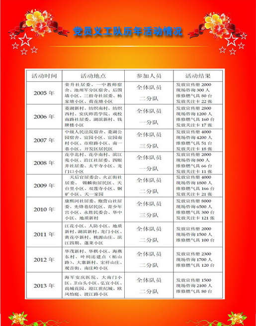 黨員義工隊歷年活動情況 發(fā)布時間:2013-12-13    閱讀次數(shù):14059次