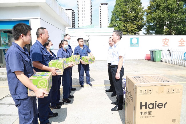 為切實做好夏季防暑降溫工作,保障高溫期間全體職工的身體健康,確保生產(chǎn)經(jīng)營工作順利進行,8月11日下午,安慶港華常務副總楊善俊、工會主席韓高中一行來到港華路加氣站、雙井街路段戶內管外移作業(yè)現(xiàn)場及北部新城調峰站等處,看望慰問高溫下始終堅守在一線崗位的燃氣工作者,并送去冷柜、飲用水和防暑降溫用品,把公司的關懷送到職工們的心坎里。