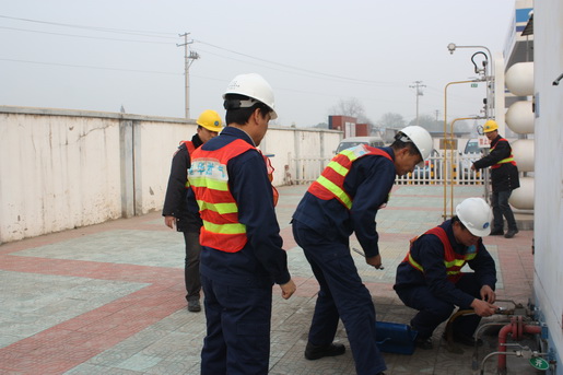 126下午15時(shí)50分,安慶港華燃?xì)饧t關(guān)CNG加氣站內(nèi)響起急促燃?xì)鈭?bào)警器聲。緊接著,加氣工迅速關(guān)閉加氣機(jī)應(yīng)急球閥停止加氣,禁止車輛移動(dòng),并大聲呼喊:“漏氣了,大家快撤到站外安全地帶?!?/span>1552分,站內(nèi)司乘人員在加氣工的指導(dǎo)下,全部撤到站外,并在站外拉起警戒線。1600,站內(nèi)搶修人員通過(guò)對(duì)泄漏現(xiàn)場(chǎng)的初步判斷泄漏來(lái)自2#壓縮機(jī)處,立即停止壓縮機(jī)工作。如此同時(shí),當(dāng)班班長(zhǎng)立即把現(xiàn)場(chǎng)情況向站長(zhǎng)報(bào)告。1610分,接到指令的站、部門負(fù)責(zé)人帶領(lǐng)部門應(yīng)急行動(dòng)小組趕到現(xiàn)場(chǎng)。經(jīng)過(guò)各行動(dòng)小組緊張、有序的處置,僅用20分鐘的時(shí)間就成功檢查并消除了泄漏——2#壓縮機(jī)法蘭處。1632,現(xiàn)場(chǎng)指揮發(fā)出:“解除警戒,演練結(jié)束”指令。