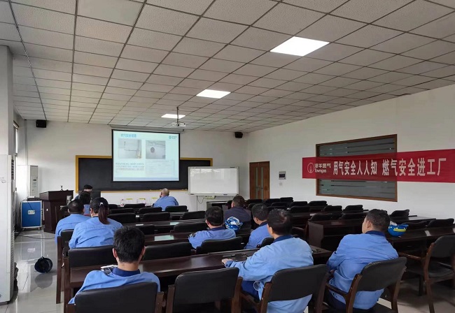 4月26日,活動(dòng)走進(jìn)了安慶帝伯格茨缸套有限公司。培訓(xùn)專員通過圖文介紹、案例分析、現(xiàn)場講解等方式,從燃?xì)庠O(shè)備的自檢與維護(hù)、相關(guān)法律法規(guī)解讀、安全隱患及事故案例、燃?xì)鈶?yīng)急處理方式四部分入手,詳細(xì)宣講了燃?xì)庵R(shí)和用氣常識(shí),分析了廣大工商客戶普遍存在的安全隱患類型、燃?xì)馐鹿蕬?yīng)急處置辦法、預(yù)防第三方施工破壞措施等內(nèi)容。