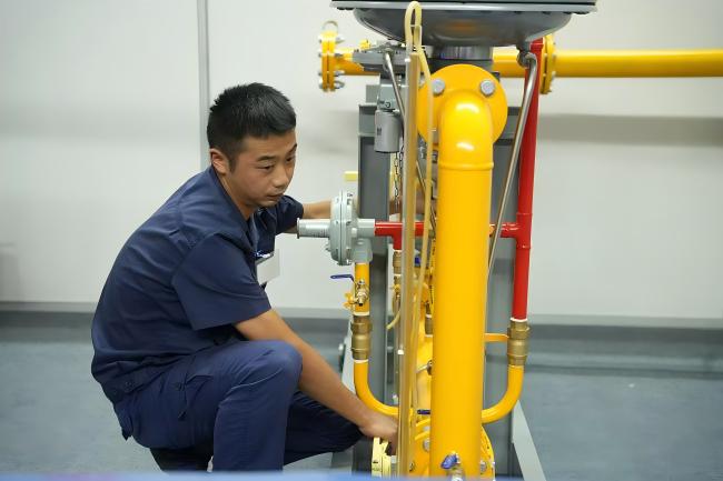 本次競賽分為理論考試和實(shí)操競賽兩大部分,內(nèi)容涵蓋技術(shù)方案編制、蒙眼拆裝、工藝系統(tǒng)檢查及故障排除等多項(xiàng)考核內(nèi)容。理論考試主要檢驗(yàn)參賽選手對(duì)燃?xì)夤艿勒{(diào)壓相關(guān)知識(shí)的掌握情況,而實(shí)操競賽則通過模擬真實(shí)工作環(huán)境,全面考察選手的實(shí)際操作能力和應(yīng)對(duì)突發(fā)情況的能力。在實(shí)操競賽中,選手們需要在規(guī)定時(shí)間內(nèi)完成蒙眼拆裝切斷閥、排查調(diào)壓器故障并恢復(fù)管道壓力等任務(wù),整個(gè)過程需準(zhǔn)確無誤的完成144個(gè)零件的拆裝,并一次性調(diào)試合格。比賽現(xiàn)場(chǎng)氣氛緊張而熱烈,選手們?nèi)褙炞?、爭分奪秒,展現(xiàn)了燃?xì)庑袠I(yè)職工良好的職業(yè)素養(yǎng)和團(tuán)隊(duì)協(xié)作精神。