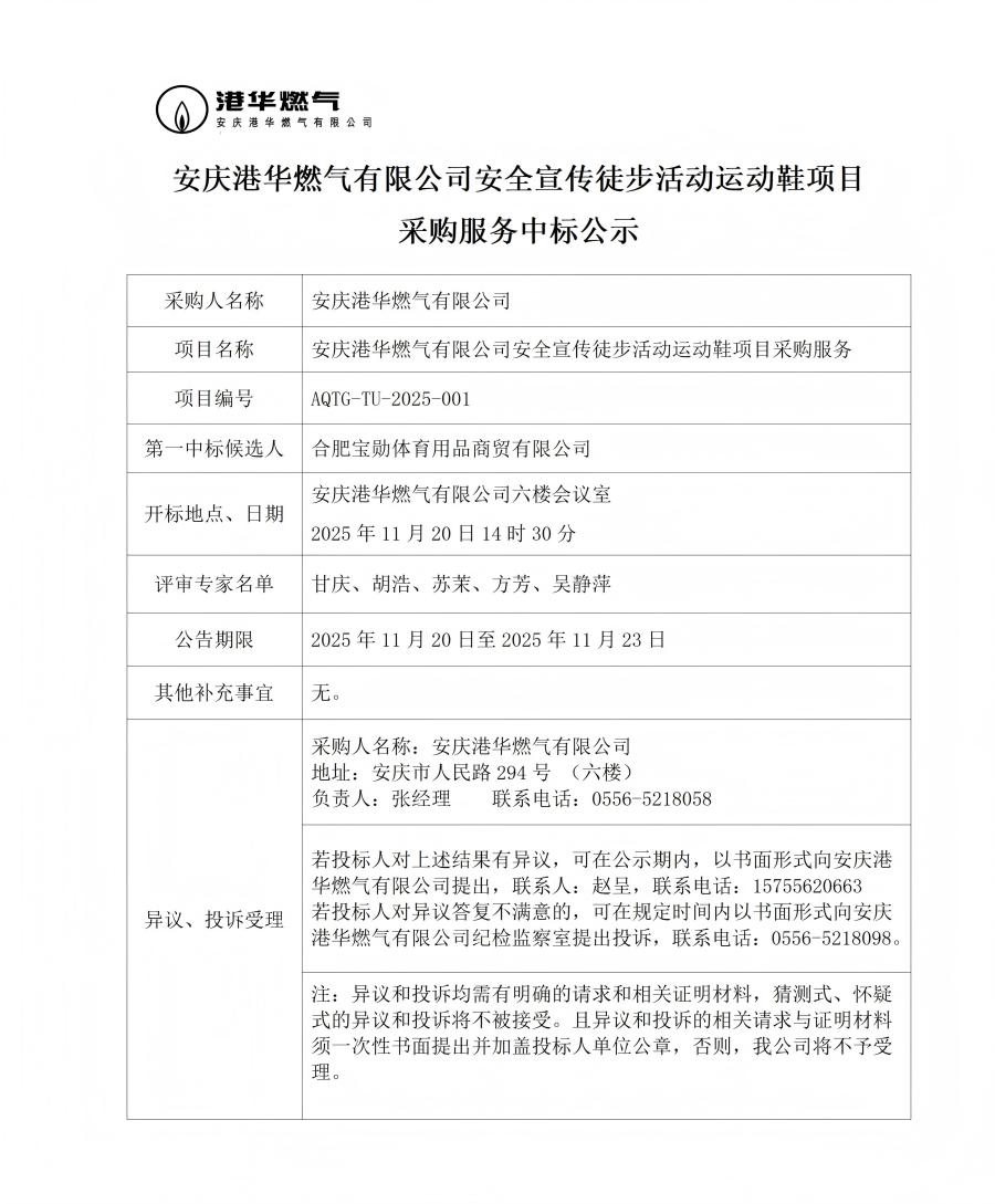安慶港華燃?xì)庥邢薰景踩麄魍讲交顒?dòng)運(yùn)動(dòng)鞋項(xiàng)目采購服務(wù)中標(biāo)公示 發(fā)布時(shí)間:2025-11-21    閱讀次數(shù):784次