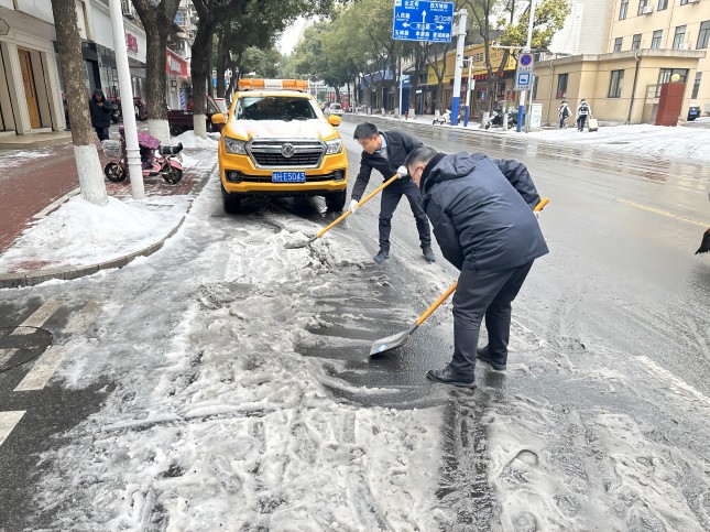 迅速除雪保秩序。2月23日上午,安慶港華近30名藍(lán)焰義工一上班就奔赴孝肅路(龍山路口至宜城路口路段),迅速開展鏟雪除冰志愿行動。義工隊員們頂著凜冽寒風(fēng),對負(fù)責(zé)區(qū)域的機動車道、人行道及地陡路險等重點區(qū)域,開展了近4個小時的地毯式清掃,并實時提醒過往行人注意安全。于此同時,公司各場站、客戶中心等生產(chǎn)經(jīng)營場所,也第一時間開展周邊區(qū)域除雪除冰工作,確保來訪人員及車輛出入安全,保障各項燃?xì)夥?wù)工作有序開展。