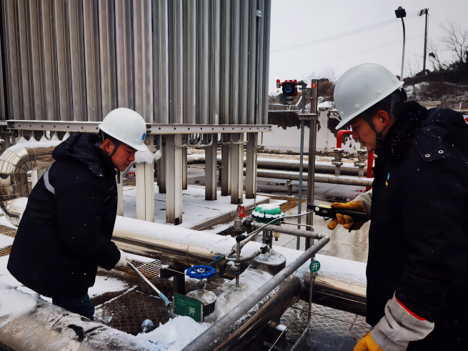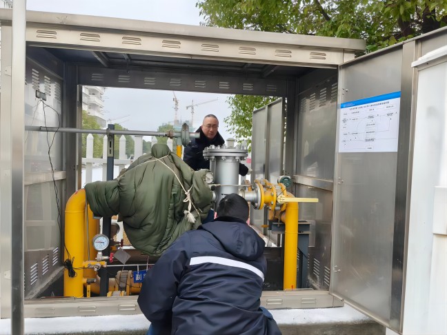 保障輸配勤維護(hù)。為保障低溫雨雪天氣下全市生產(chǎn)生活穩(wěn)定用氣,場站運行工高頻次檢查各重要設(shè)備運行情況,細(xì)致排查安全問題,一絲不茍確保關(guān)鍵環(huán)節(jié)處于良好運行狀態(tài);巡線探漏人員頂風(fēng)冒雪,重點加大了人員密集區(qū)域及民生保障關(guān)鍵點的燃?xì)夤芫W(wǎng)巡查探漏,并對易受低溫影響的管道、閥井、調(diào)壓設(shè)備及時采取包裹棉被、排水等防凍措施。